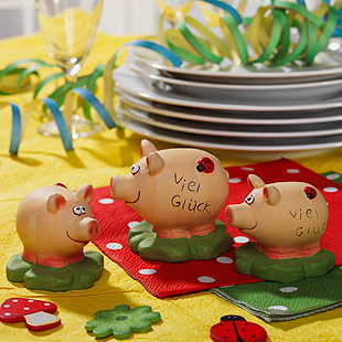 Schornsteinfeger, Glückklee und kleine Glücksschweine sollen uns gut durch ein erfolgreiches neues Jahr begleiten. Folgen Sie diesem schönen alten Brauch. Drücken Sie Ihren Lieben mit den Glückbringern von HEITMANN DECO Ihre guten Wünsche aus. Niedlich gestaltet und zum Hängen, Stellen und Kleben, finden die freundlichen Boten überall einen schönen Platz. Für fröhliche Silvesterstimmung sorgen die Party-Artikel wie Girlanden, Hüte und Knicklichte.